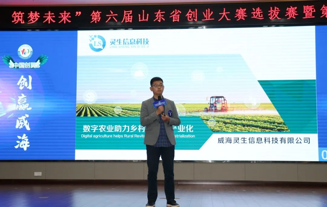 擦亮创新创业“底色”,再添高质量发展“成色”。5月12日,由威海市人力资源和社会保障局等12部门联合主办的“创赢威海 筑梦未来”——第六届山东省创业大赛选拔赛暨第四届威海市创业大赛决赛举办。 创业大赛助力梦想起航 带着富有创意的“金点子”,参加决赛的选手们在舞台上满怀激情地介绍着自己的创业项目。威海灵生信息科技有限公司的张彦明老家济南,本科就读于哈尔滨工业大学(威海),在中科院读研毕业后留在北京工作了九年,2018年他决定回到威海创业,要为乡村振兴贡献一份力量。