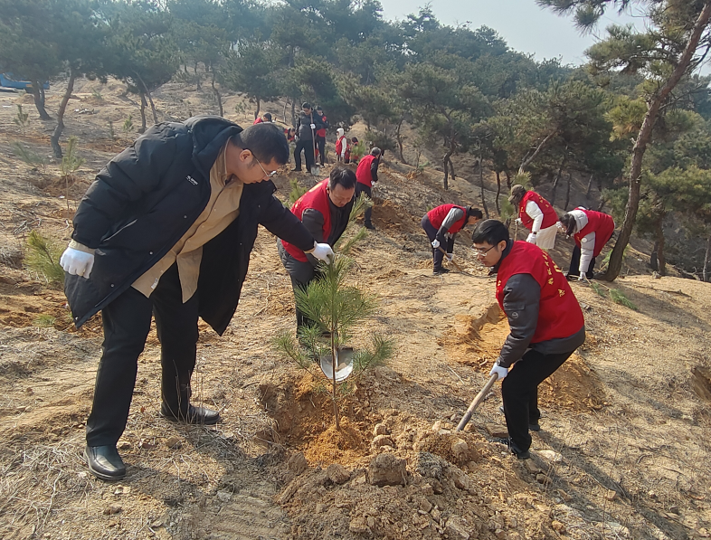 春风吐绿,万物勃发。在第48个植树节来临之际,市人力资源社会保障局深入贯彻落实习近平生态文明思想,组织党员干部赴文登区天福街道十里头村开展“植此新绿护家园,不负春光显担当”主题党日活动。活动现场,党旗迎风飘扬,党员干部热情高涨、干劲十足。大家三五成组、分工协作,挥锹挖坑、扶苗培土、提水浇灌,每一道工序都一丝不苟,每一个环节都配合默契。经过一上午的辛勤劳作,100余棵松树苗迎风挺立、错落有致,为初春的乡村大地增添了一片新绿,也种下了共建美好家园的希望与担当。 此次主题党日活动将生态文明建设与党性教育深度融合,是一堂“行走的思政课”,更是一次践行初心使命的生动实践。党员干部在挥洒汗水中感悟劳动之美,在植绿护绿中体悟“绿水青山就是金山银山”的深刻内涵,在融入大局、服务大局中彰显人社担当。下一步,市人社局将持续深化党建引领,推动生态文明理念入脑入心、见行见效,引导广大党员干部以更加昂扬的姿态、更加务实的作风,在融入绿色低碳高质量发展先行区建设、开创“精致城市·幸福威海”新局面中贡献更多人社力量。